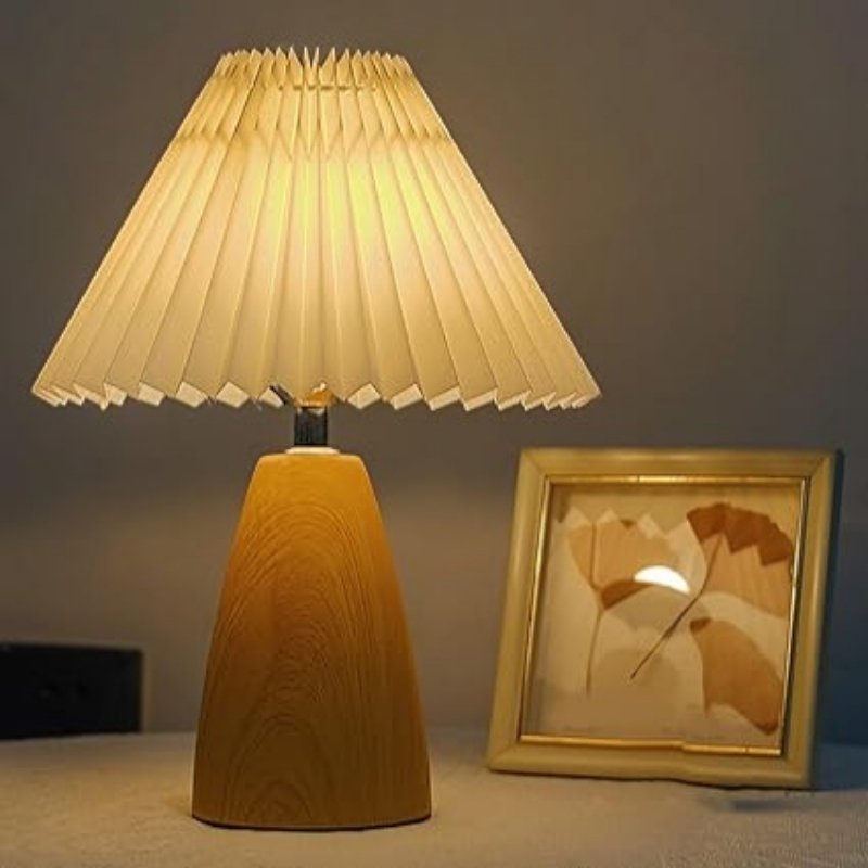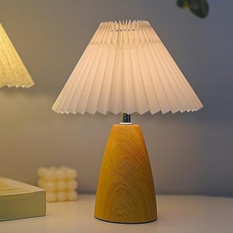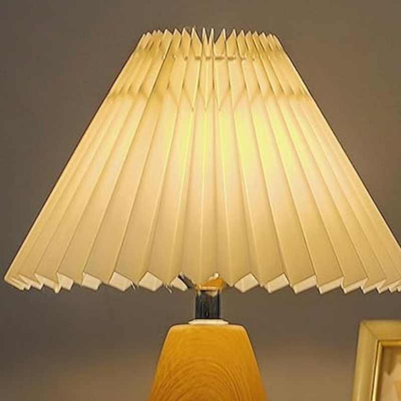 Đèn Bàn Gỗ Sồi Bắc Âu Chao Vải Xếp Nếp (Gỗ Đậm) là sản phẩm decor mang lại sự ấm cúng và sang trọng hơn với phiên bản gỗ đậm đầm ấm. Sự kết hợp giữa thân gỗ sồi tự nhiên màu nâu đậm và chao vải lanh xếp nếp màu kem tạo nên điểm nhấn đầm ấm, tinh tế, phù hợp nhiều phong cách nội thất, đặc biệt là Bắc Âu và Wabi-sabi. Ánh sáng ấm áp tạo cảm giác thư giãn, thích hợp cho phòng ngủ hoặc góc làm việc.