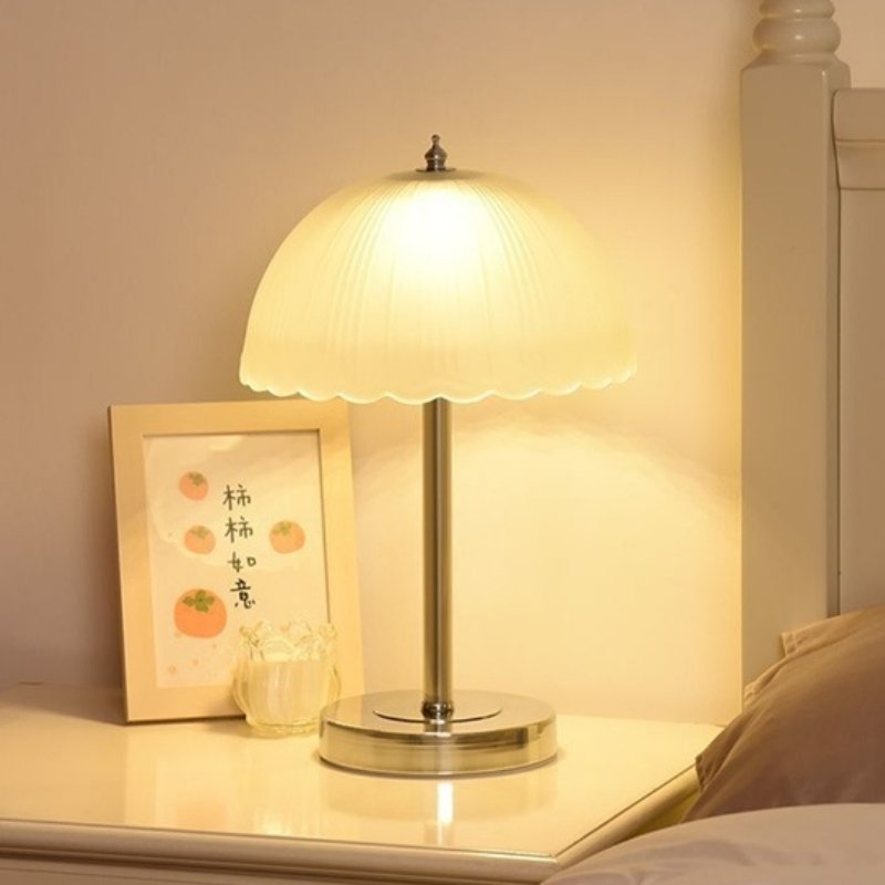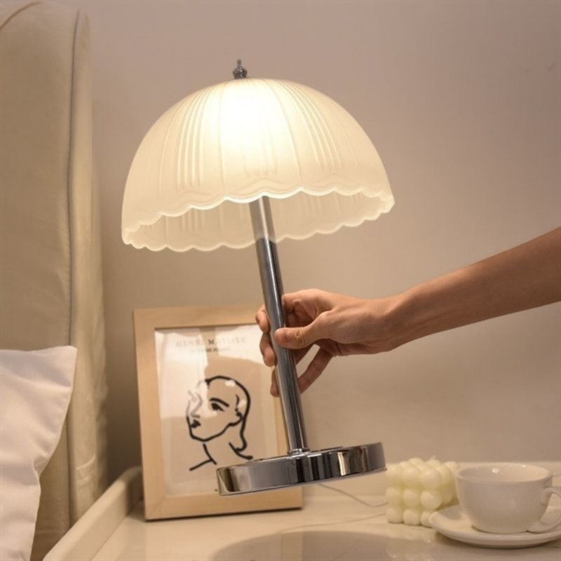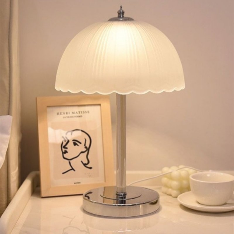 Đèn Bàn Thủy Tinh Mờ Nếp Gấp Thân Crom Thanh Lịch là một sản phẩm decor độc đáo, mang đến vẻ đẹp tinh tế và sang trọng cho không gian sống của bạn. Sự kết hợp hoàn hảo giữa chao đèn thủy tinh mờ với thiết kế nếp gấp mềm mại và thân đèn bằng kim loại mạ crom sáng bóng tạo nên một điểm nhấn thẩm mỹ đầy cuốn hút. Ánh sáng ấm áp lan tỏa từ đèn giúp không gian trở nên ấm cúng và thư giãn hơn, lý tưởng cho phòng ngủ hoặc góc đọc sách.