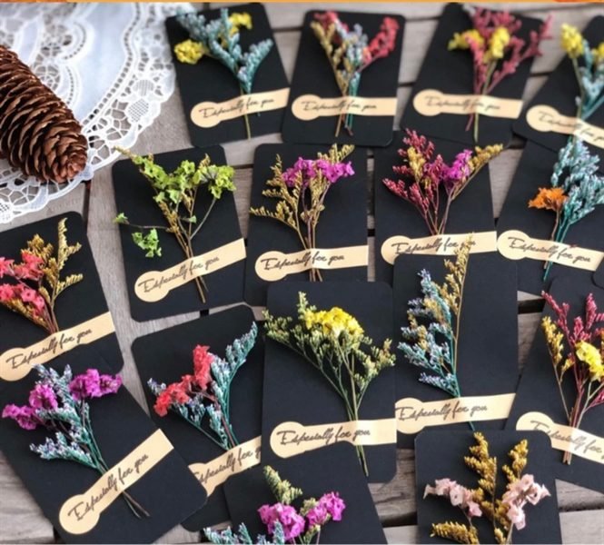 Kiểu dáng: Hoa khô mini gắn trên thẻ giấy